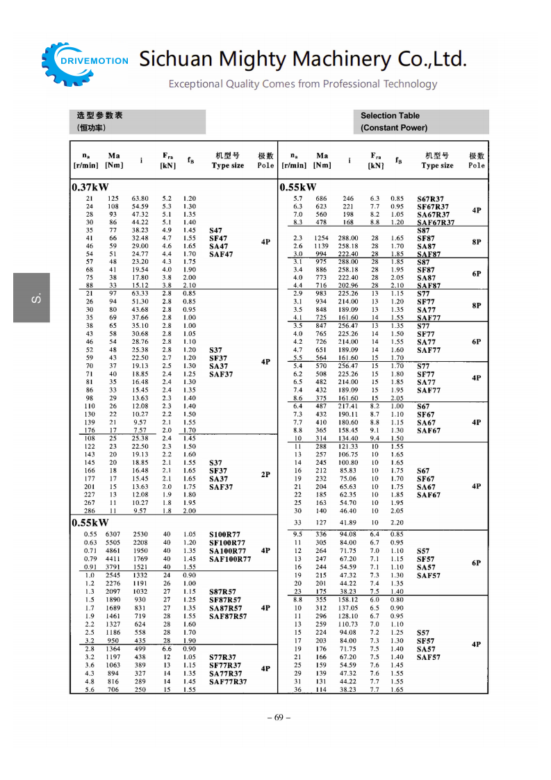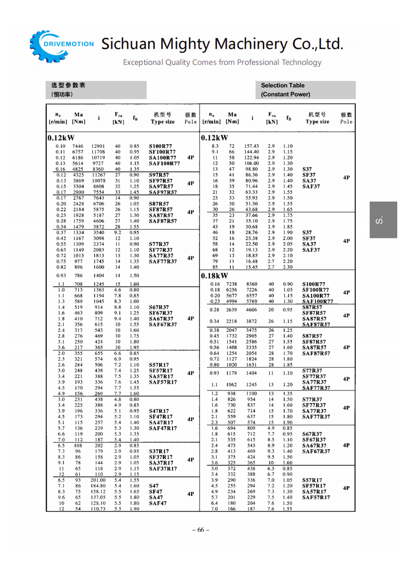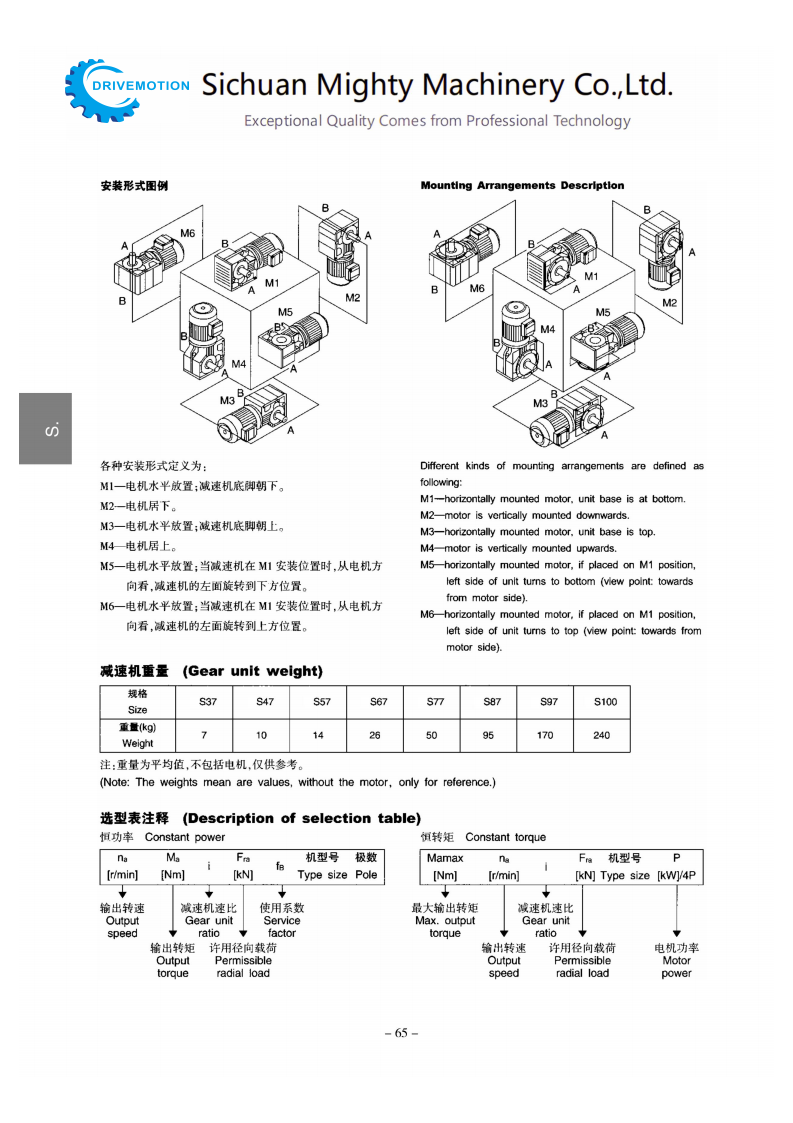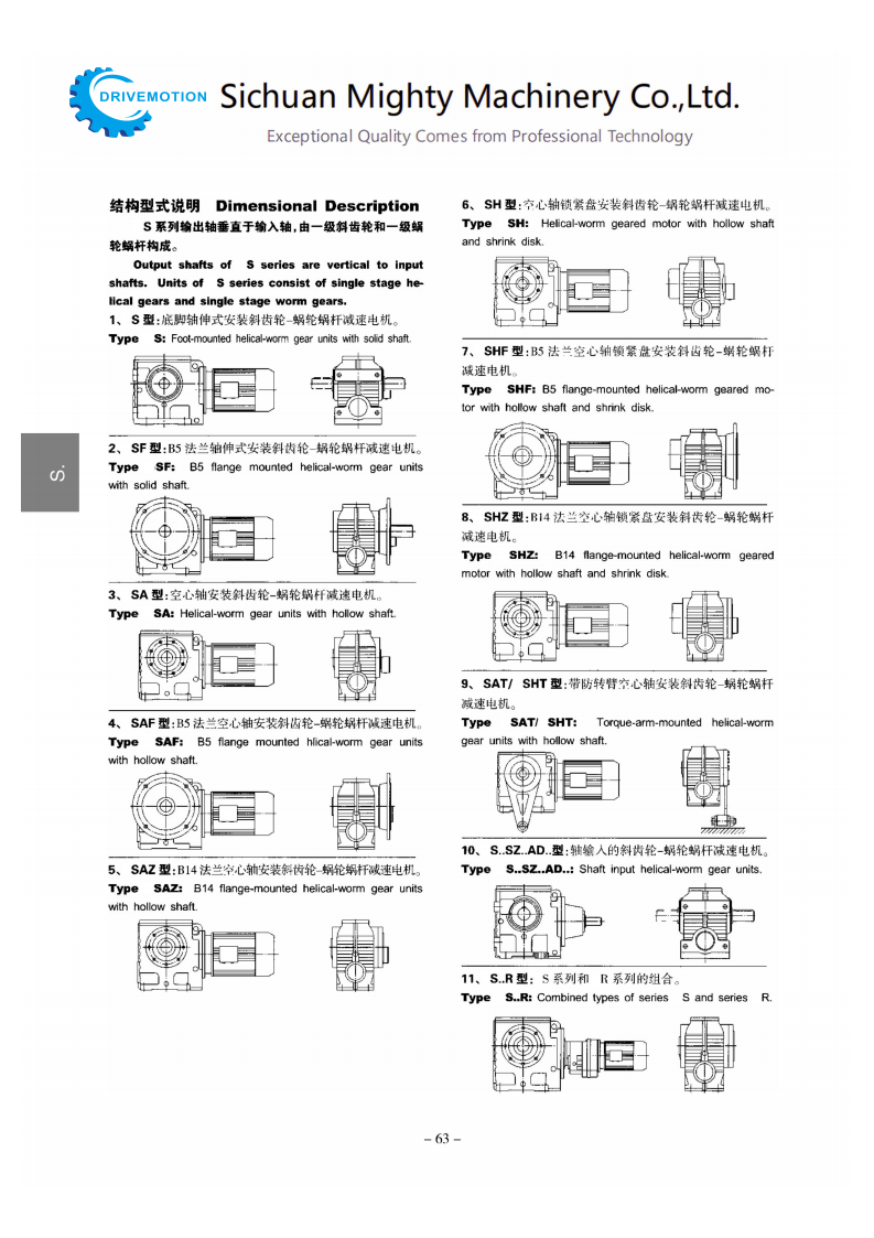 The S Series Helical Worm Gear Reducer combines a helical gear stage with a worm gear stage, providing high reduction ratios in a compact structure. It offers smooth transmission, stable performance, and flexible installation options, making it suitable for applications requiring low output speed and high torque in limited installation space.